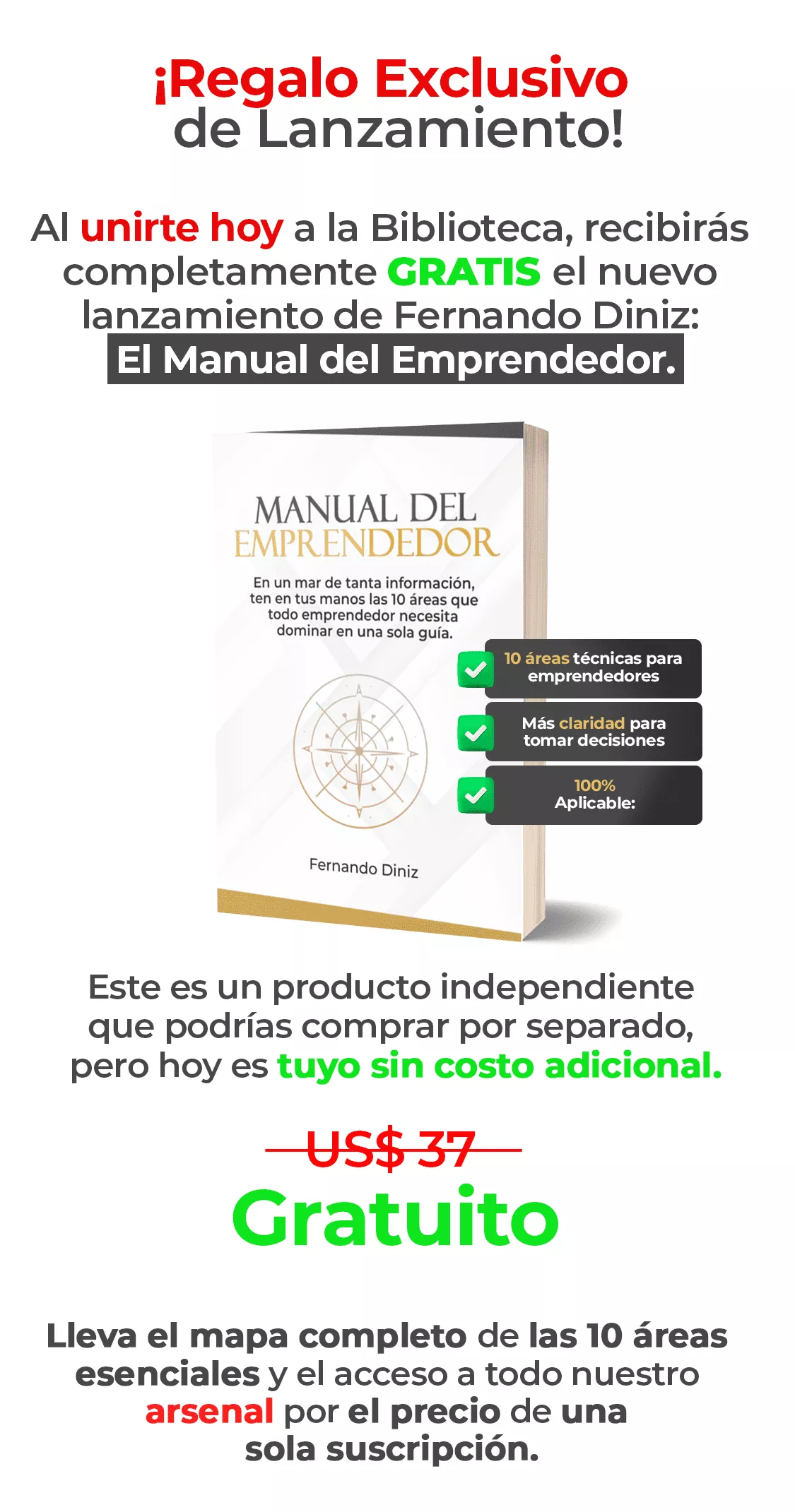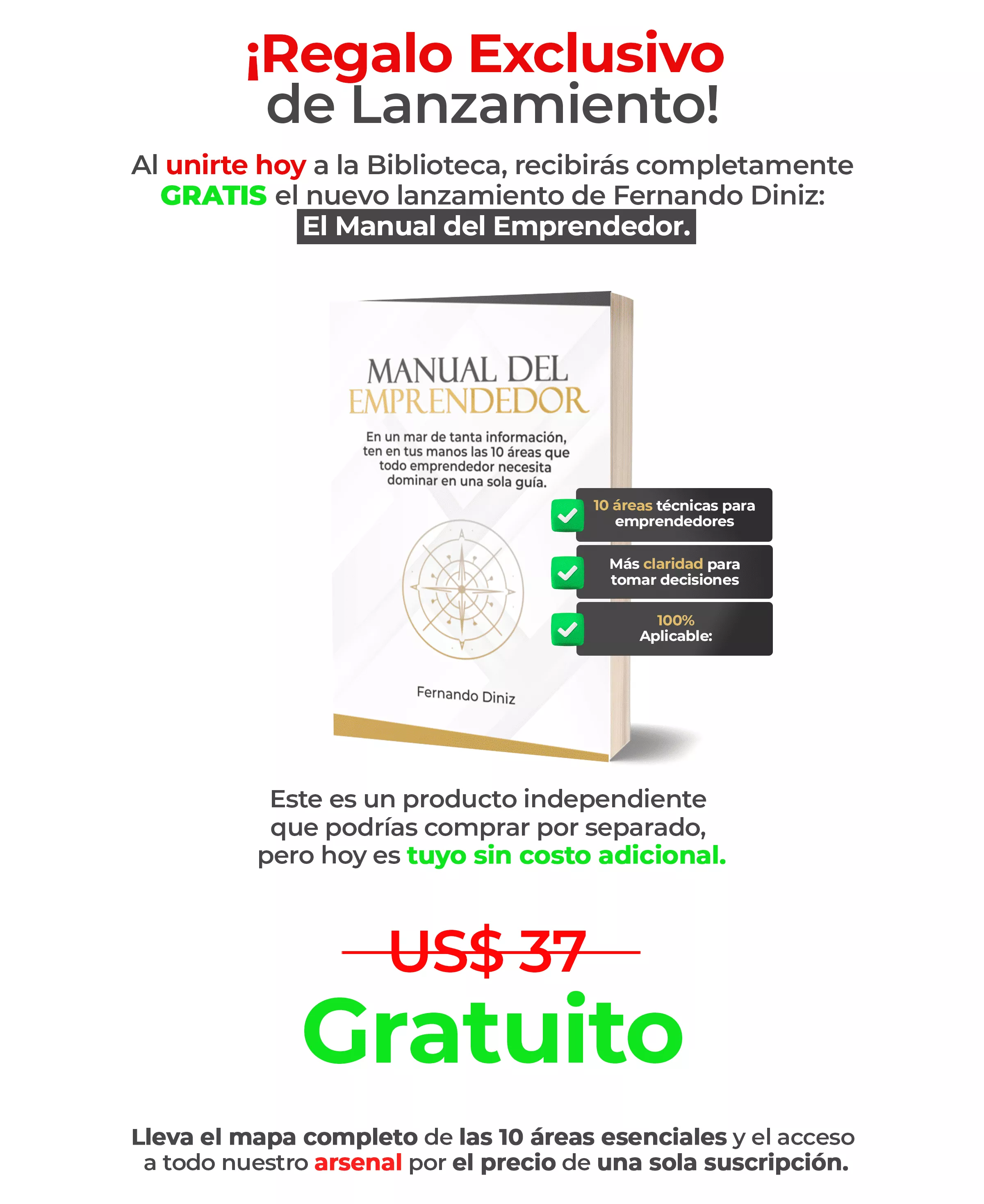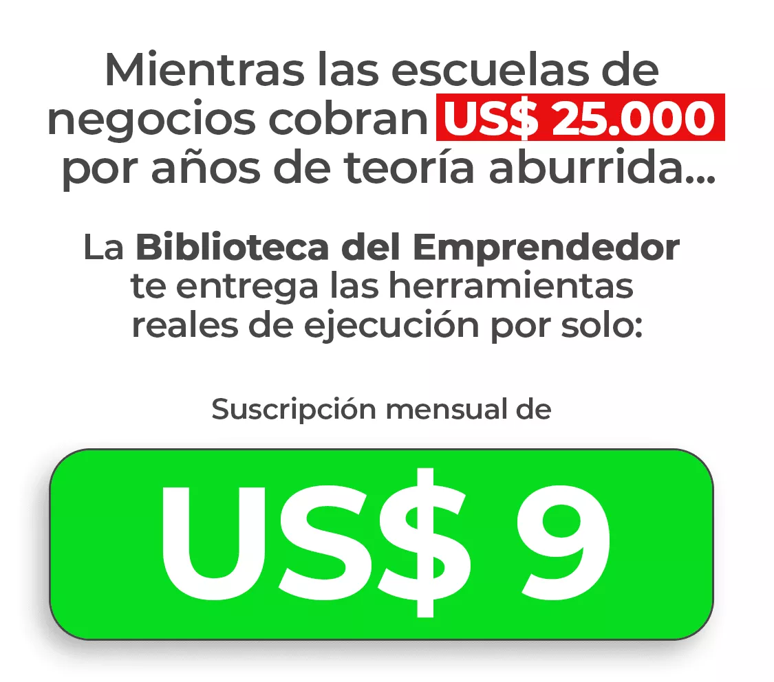 Tendrás acceso a todo el contenido, actualizaciones y nuevos materiales mientras tu suscripción de US$ 9 esté activa. Puedes cancelar cuando quieras sin contratos ni burocracia. El Manual del Emprendedor (regalo de lanzamiento) es tuyo para siempre.
