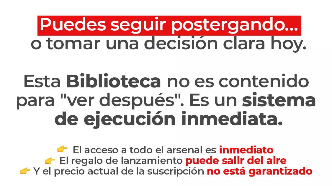 Es 100% práctico. No perdemos tiempo con teorías aburridas de MBA. Cada material de la Biblioteca es un sistema de ejecución inmediata diseñado para que dejes de planear y comiences a facturar.