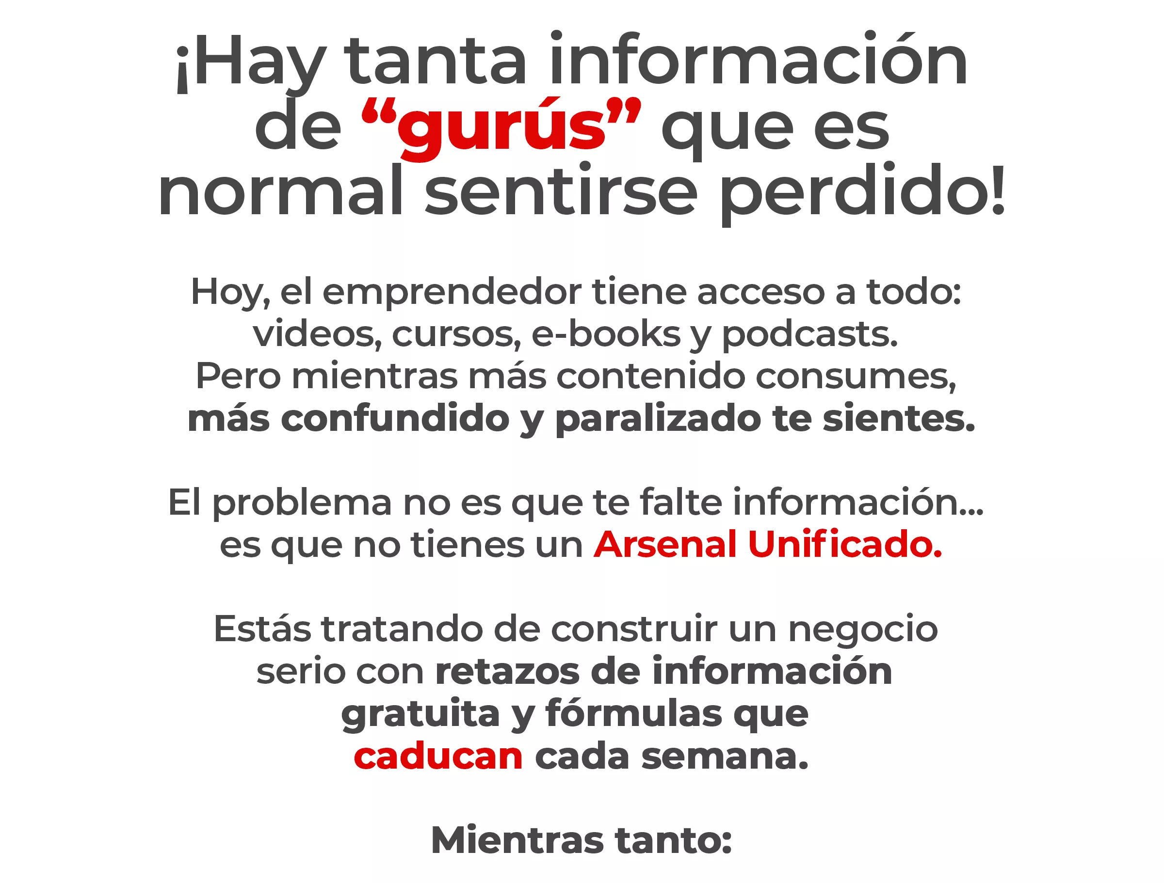 No. El arsenal sirve tanto para dueños de negocios que quieren escalar como para nuevos emprendedores que quieren empezar con el pie derecho y claridad total.